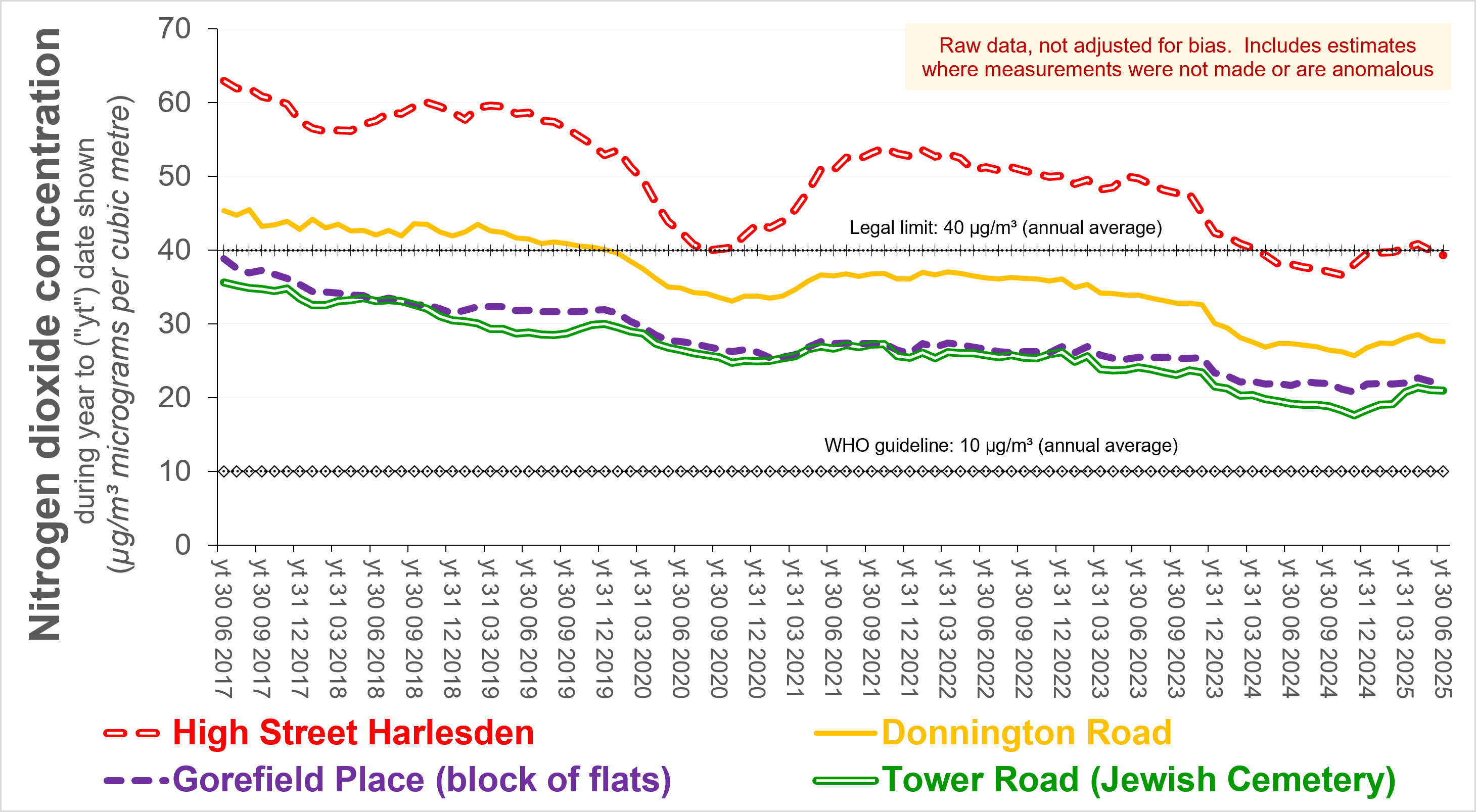 in the Borough of Brent.  The trend in NO2 is unclear but